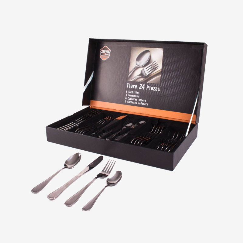 Eleva tu mesa con nuestro juego de cubiertos Tiara de acero inoxidable 18/10. Estos cubiertos tienen un brillo y una sensación sólidos, y su acero inoxidable de grado alimenticio es resistente a la oxidación y al óxido. Además, el acero inoxidable 18/10 es resistente a la corrosión y fácil de limpiar, por lo que siempre tendrás un juego de cubiertos que se vea y se sienta nuevo. ¡Haz que cada comida sea especial con nuestro juego de cubiertos Tiara de acero inoxidable 18/10